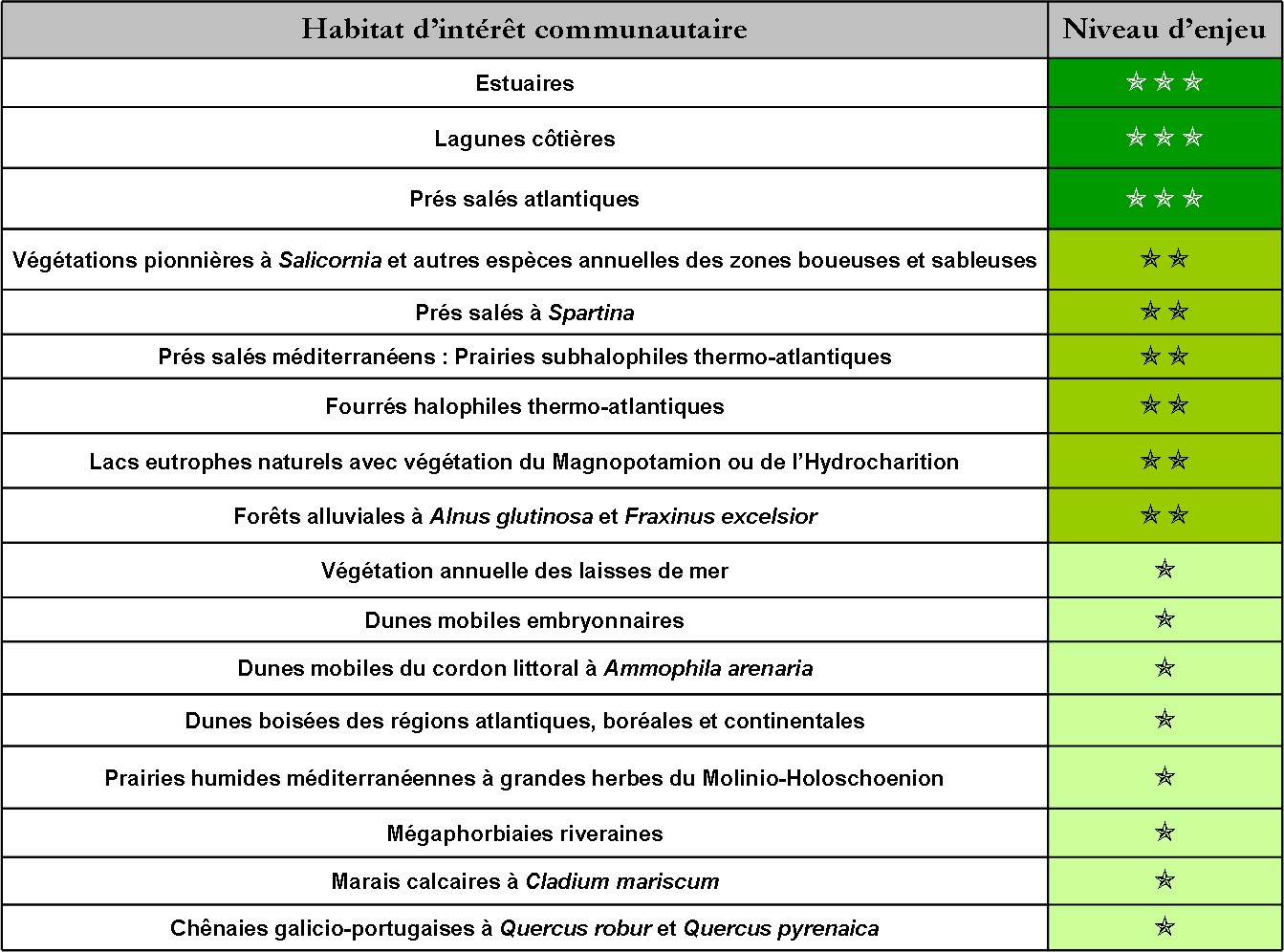 * : Habitat ou espèce prioritaire